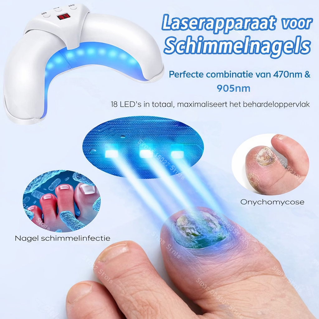 Laserbehandeling voor schimmelnagels is bewezen effectief. Het apparaat gebruikt specifieke lichtgolven die gericht inwerken op schimmels zonder schade aan gezonde huid of nagels. Er zijn geen schadelijke bijwerkingen bekend bij normaal gebruik.